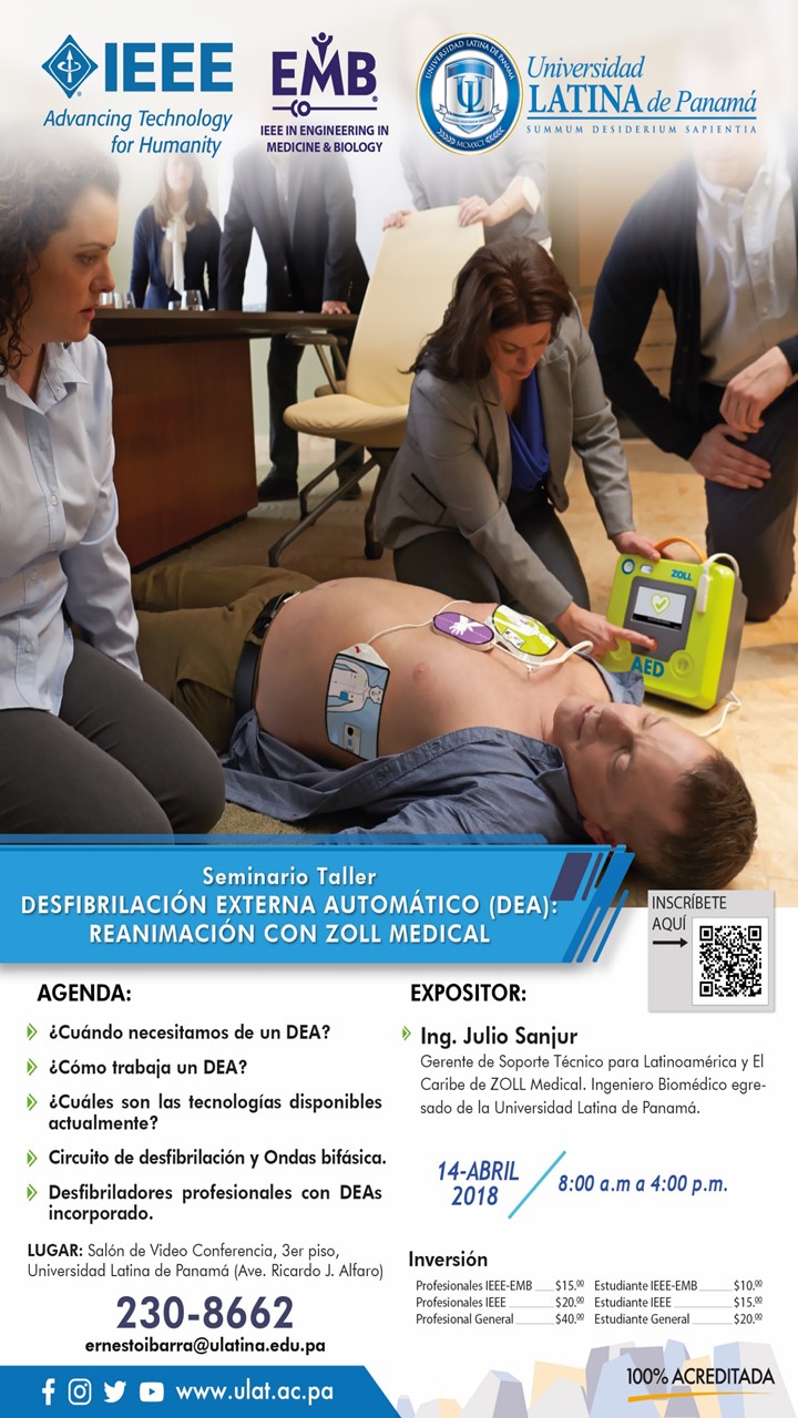 En el presente siminario taller se expondran diversos temas que giran en torno a los Defibriladores Externos Automaticos (DEA). El participante se podra capacitar en tecnologia y aplicaciones de vanguardia en esta campo, especificamente en la desarrollada por ZOLL Medical. Los modelos de desfibriladores de ZOLL Medical tanto manuales y DEA incluyen la función de ayuda Real CPR Help®, la cual ofrece asesoría en tiempo real y retroalimentación de RCP, que mide la frecuencia y profundidad de las compresiones durante la reanimación.