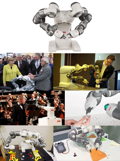 ABB has developed a collaborative, dual arm, small parts assembly robot solution that includes flexible hands, parts feeding systems, camera-based part location and state-of-the-art robot control. YuMi is a vision of the future. YuMi will change the way we think about assembly automation. YuMi is “you and me”, working together to create endless possibilities.