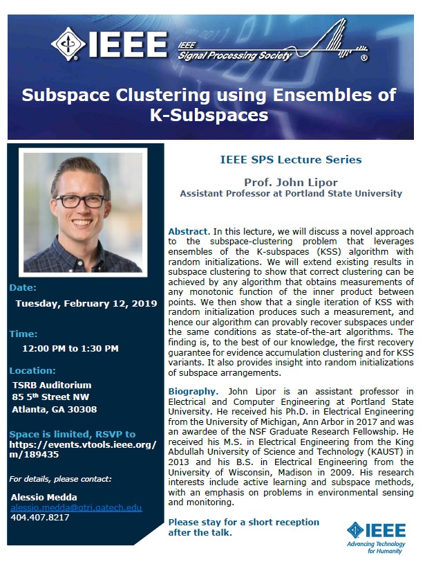 The Atlanta Signal Processing Chapter is honored to host Prof. John Lipor from Portland State University