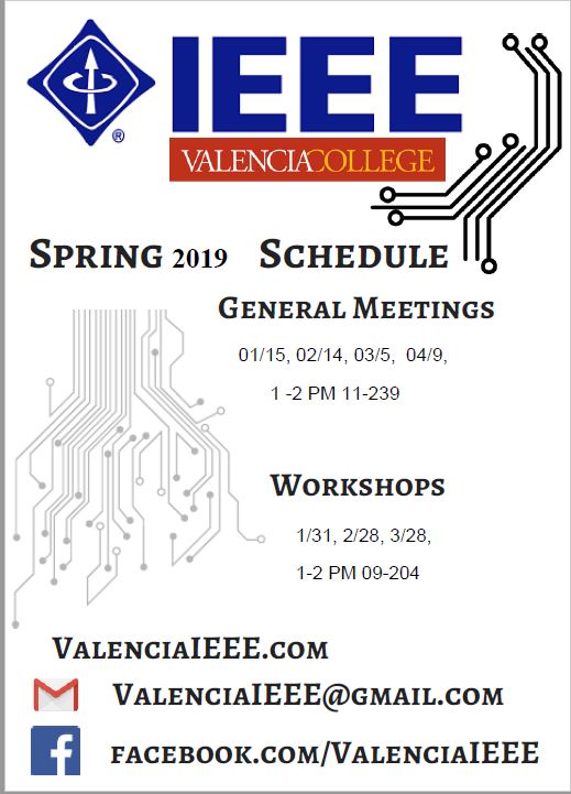 The Institute of Electrical and Electronics Engineers (IEEE) Valencia College Student Chapter would like to invite everyone to our second general body meeting of the Spring Semester. We will be discussing upcoming events including Engineering Week where we are colaborating with FES, NSBE, and SWE. See advertisment below: