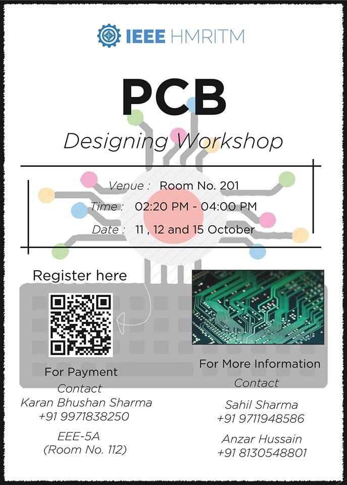 A workshop on “PCB designing” is planned to be organized under the IEEE HMRITM student branch for the benefits of students from any stream and any technical university.
