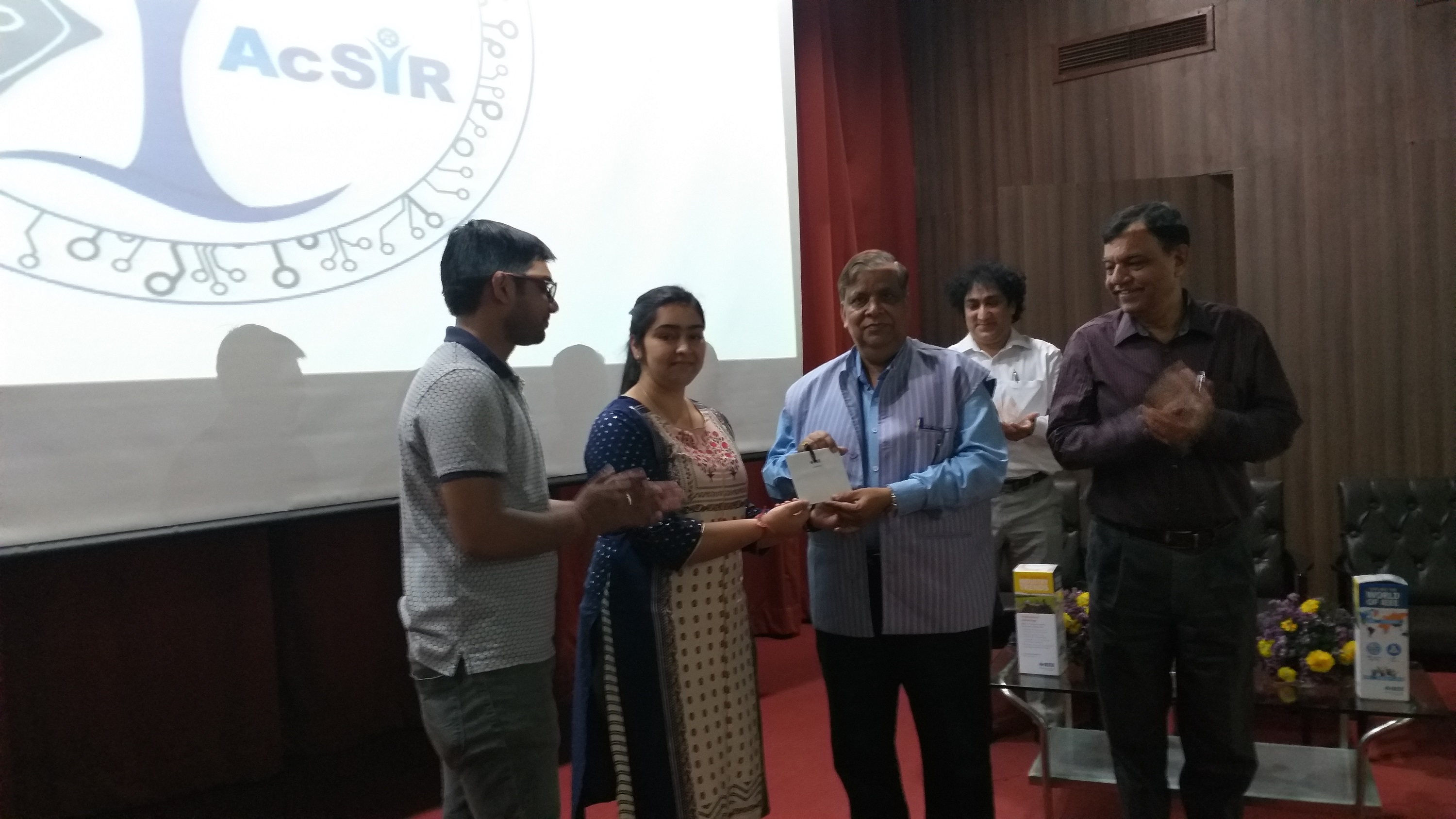 Prof. R.K. Sinha, a distinguished member of Photonics Society of IEEE and Director, CSIR-CSIO, delivered an interactive talk about the need and benefits of IEEE society along with sharing some personal experiences. Prof. Sinha also encouraged the executive committee to arrange more of such events for the benefit of student branch members. Also, Dr. Vinod Karar, coordinator of AcSIR-CSIO, delivered keynote address welcoming the new student branch into the family of AcSIR-CSIO and encouraged students to participate more and more into it. Further, The winner of the competition was announced during the event and felicitated with a certificate and IEEE souvenirs, along with other participants, by the invited speakers.