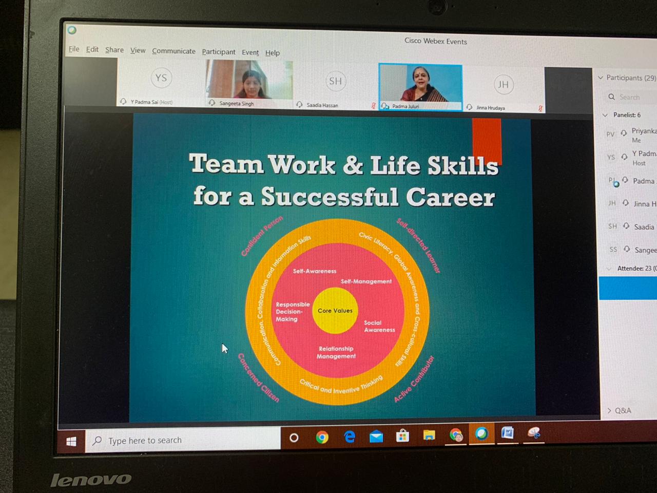 A Webinar on "Team Work and Life Skills for a Successful Career"