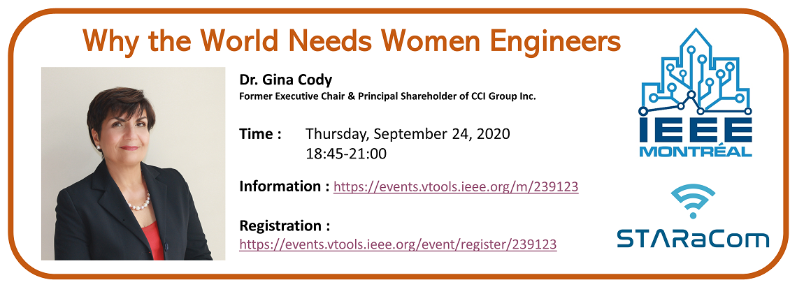 Please join us for this year IEEE Montréal Keynote Event. Our invited speaker Dr. Gina Cody will talk about: