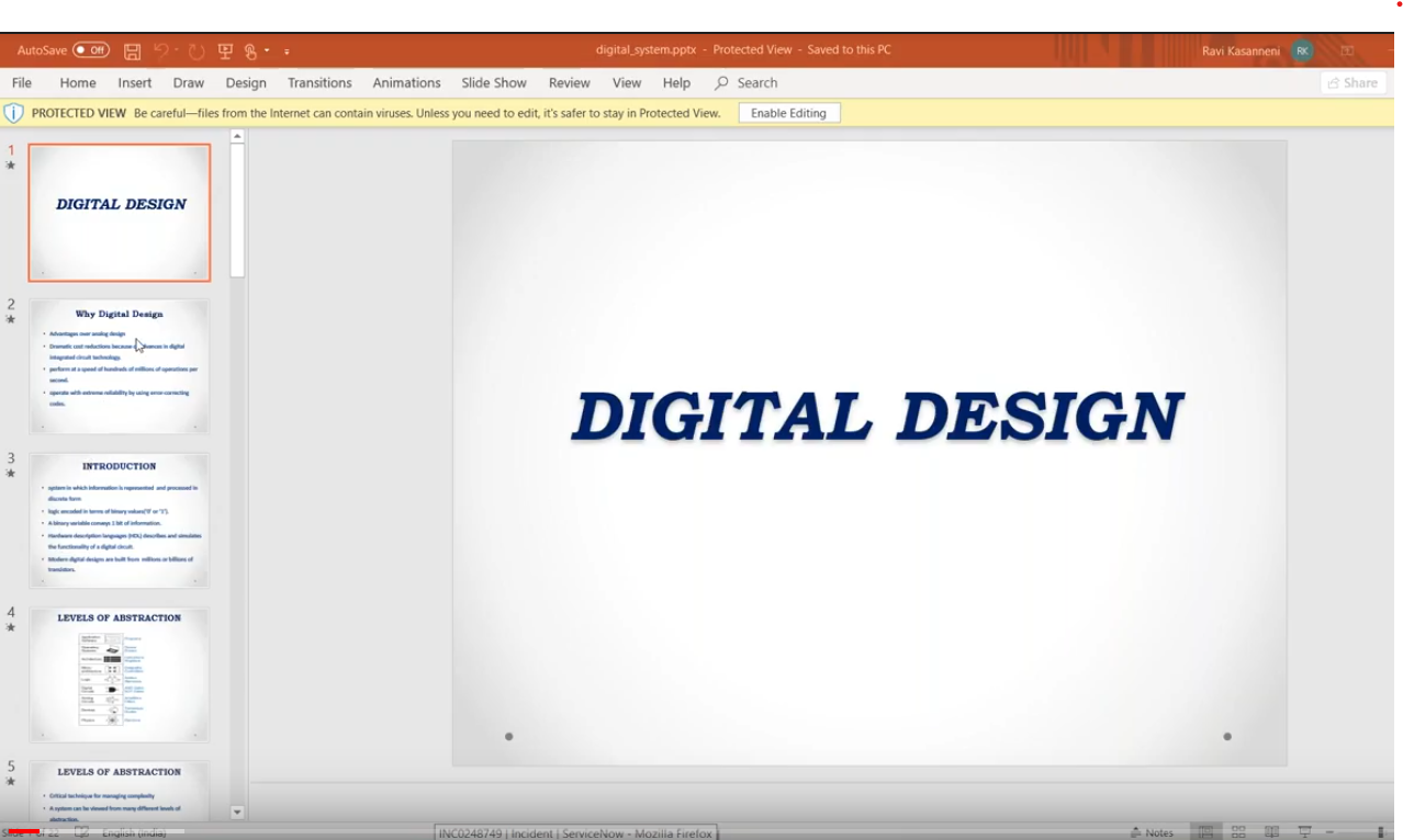 1. The session started off with a basic recap of previous session and explanation of why the industry prefers digital design, what are its advantages and disadvantages. She spoke about the intrusion of noise and the advantages in terms of power consumption.