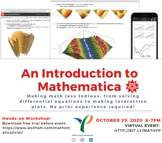You’re likely familiar with Wolfram Alpha, but you may be unfamiliar with its ”big brother”: the much more capable Mathematica. Join and learn about the usefulness of this software for making math less tedious, from solving differential equations to making interactive plots. This short introduction assumes no prior knowledge of Mathematica, but you should have the software ready to run to get the most out of this hands-on workshop.