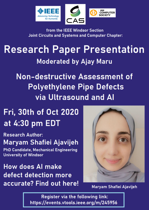 Presented poster, IEEE IUS 2020, Ultrasound Flaw Detection of Medium-Density Polyethylene Fused Joints Using Chord Transducers and Implementation of Artificial Intelligence
