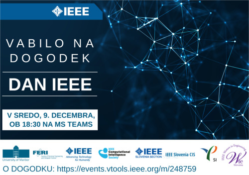 Vabljeni na dogodek "Dan IEEE", ki bo 9. decembra 2020 ob 18:30 v MS Teams.