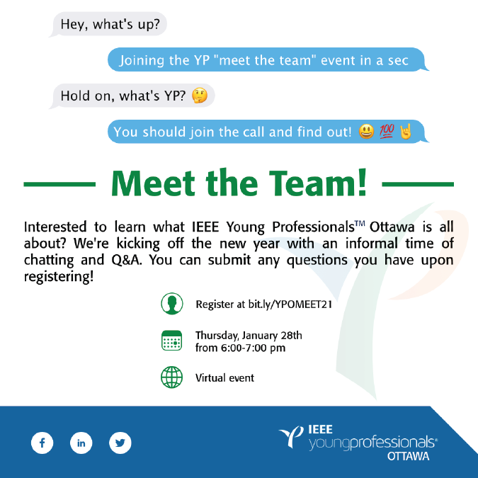 Are you interested to learn more on what IEEE Young Professionals Ottawa is all about? We are kicking off the new year with an informal time of chatting and Q&A.