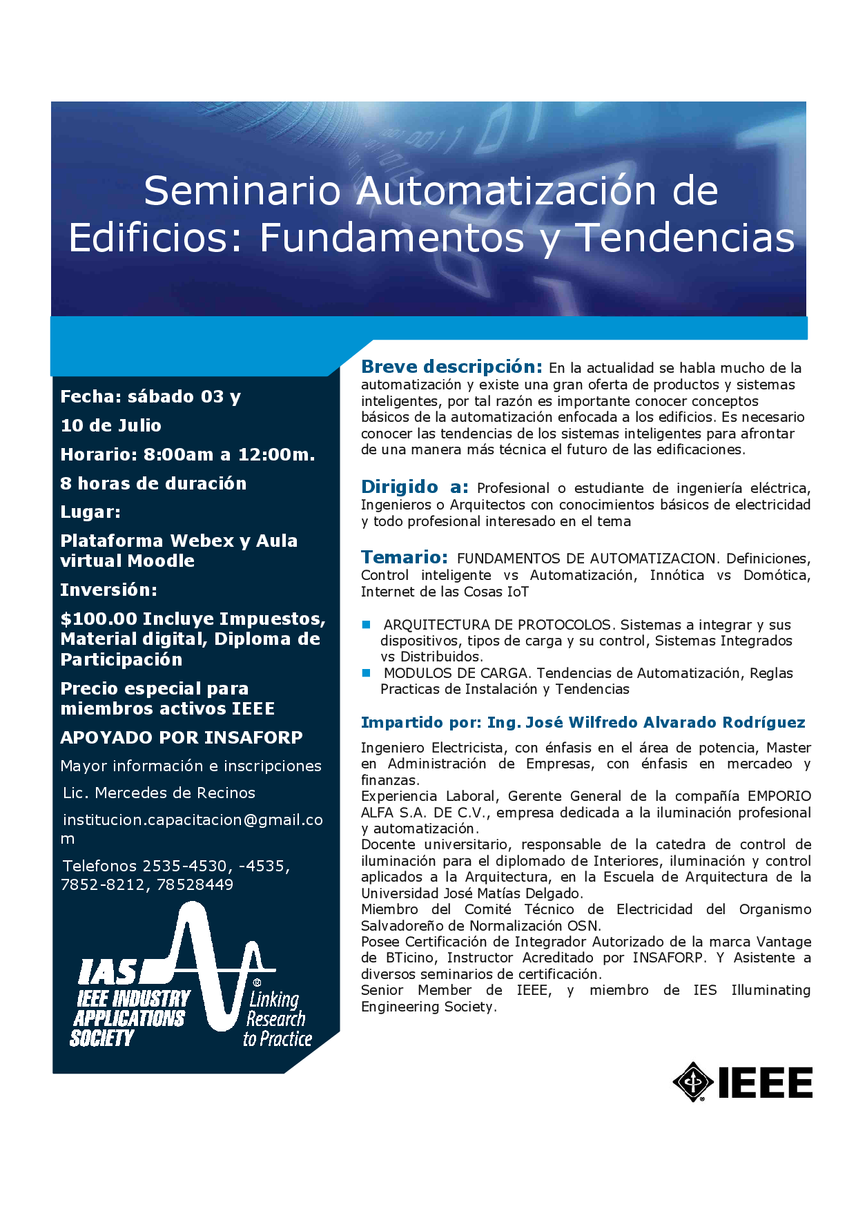 Senior Member de IEEE, y miembro de IES Illuminating Engineering Society.