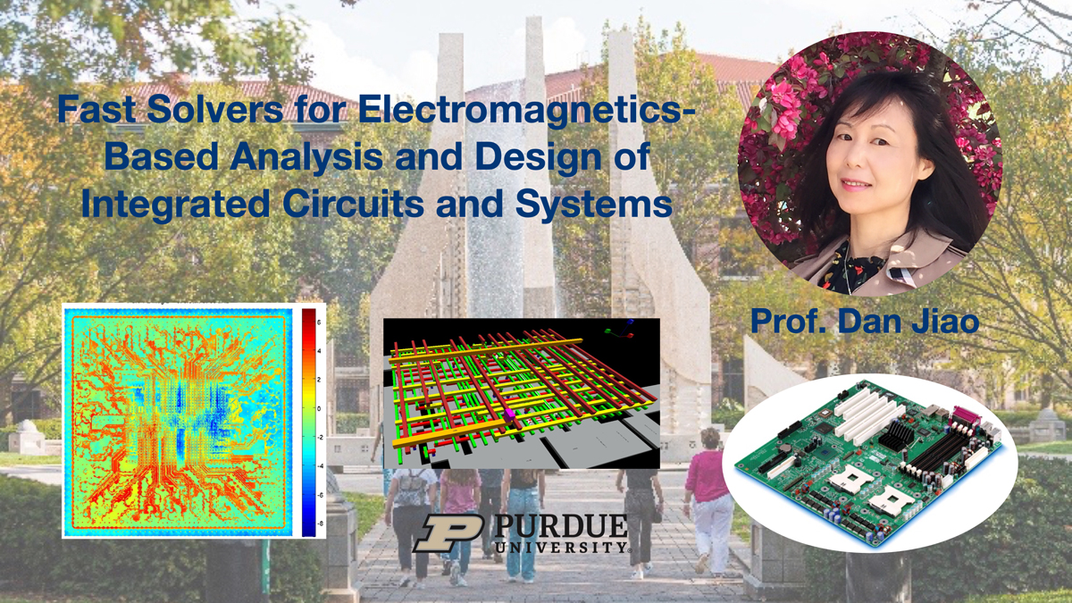 Dan Jiao received her Ph.D. degree in electrical engineering from the University of Illinois at Urbana-Champaign, in 2001. She then worked at the Technology Computer-Aided Design (CAD) Division, Intel Corporation until September 2005, as a Senior CAD Engineer, Staff Engineer, and Senior Staff Engineer. In September 2005, she joined Purdue University as an Assistant Professor with the School of Electrical and Computer Engineering, where she became a tenured Associate Professor in 2009, and a Full Professor in 2013. Prof. Jiao has authored over 300 papers in refereed journals and international conferences. Her current research interests include computational multiphysics, computational electromagnetics, and high-frequency integrated circuit design and analysis. Prof. Jiao has received many research recognitions including the Intel’s 2019 Outstanding Researcher Award, the 2013 S. A. Schelkunoff Prize Paper Award of the IEEE Antennas and Propagation Society, being one of the 85 selected for National Academy of Engineering’s (NAE) 2011 U.S. Frontiers of Engineering Symposium, the NSF Career Award in 2008, the Intel Logic Technology Development (LTD) Divisional Achievement Award in 2003, the 2000 Raj Mittra Outstanding Research Award, and a number of Best Paper Awards from conferences. She was elevated to IEEE Fellow for contributions to computational electromagnetics (Class of 2016).