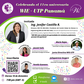 En celebrción del onceavo aniversario de WIE-UTP Panama. A compañanos a celebrarlo y a conocer más sobre nosotros IEEE Women in Engineering de la Universidad Tecnológica de Panamá. Además, vas a poder conocer algunos voluntarios y parte de los proyectos que llevamos a cabo.