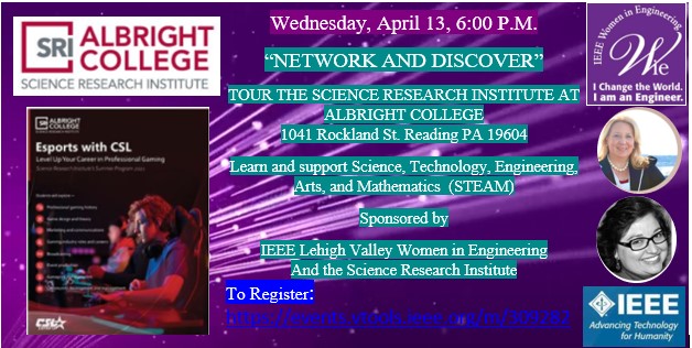 IEEE Lehigh Valley Women in Engineering is hosting a "Network and Discover" event at the brand new Science Research Institute at Albright College in Reading, PA.