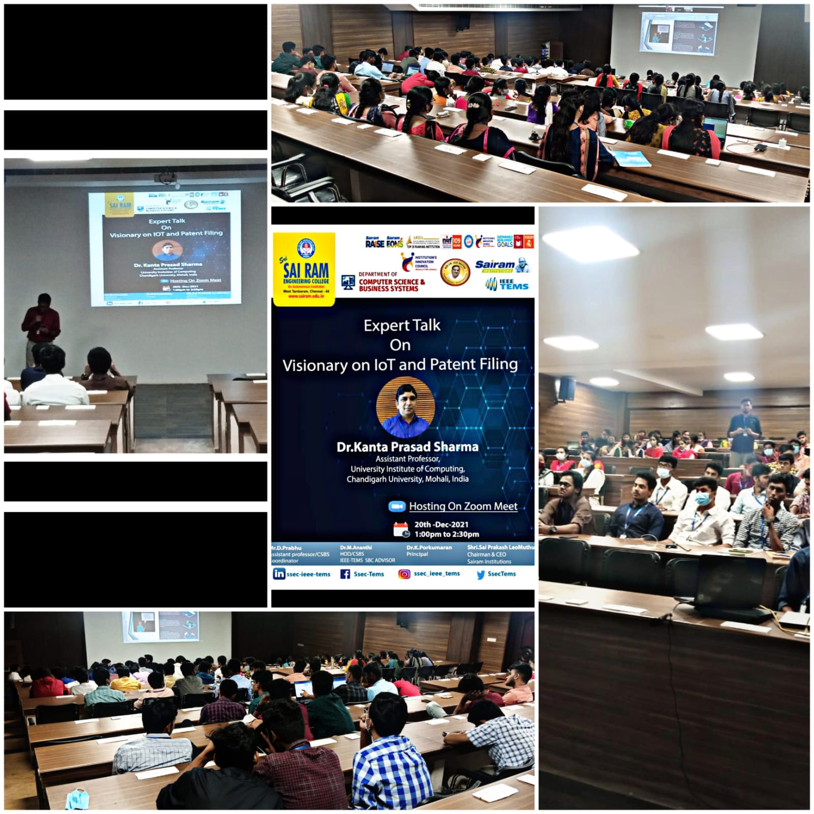 - An informative session on Cloud Computing and patent filing was held on 21/12/2021 by the TEMS Society of Sri Sairam Engineering College as a means to spread the knowledge and increase the employability of bussing engineers as Internet Of things andPatent filing for budding engineers and innovators is the trend in today’s market.