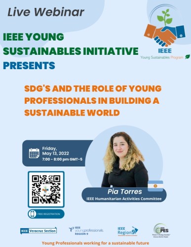 IEEE Veracruz Section in collaboration with IEEE Region 9 Young Professionals Group and IEEE Region 9 Humanitarian Activities Committee, present the Young Sustainable Initiative, a program that seeks to recognize the work of Young Professionals in favor of sustainable development.
