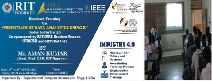 "Essentials of Data Analytics Using R" under Industry 4.0 Training Bootcamp in association with RIT IEEE STUDENT Branch(STB11763) and RIT R&D Cell