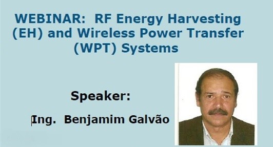 El Capitulo Argentino Conjunto de las Sociedades IEEE de ElectroMagnetic Compatibility (EMCS) y de Antennas & Propagation (APS) invita al webinario sobre "Sistemas de Recolección de Energía (EH) y Transferencia de Energía Inalámbrica (WPT)" que brindará el Ingeniero Ing. Benjamim Galvão, el viernes 3 de junio de 2022, de 19:00 a 20:15 AR (UTC-3).