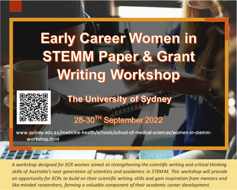 Want to improve your scientific writing and critical thinking? Applications have been open until 31 August 2022 for the Early Career Women in STEMM Paper & Grant Writing Workshop (ECWW2022) on 28-30 September 2022 as an onsite workshop at The University of Sydney (https://www.sydney.edu.au/medicine-health/schools/school-of-medical-sciences/women-in-stemm-workshop.html).