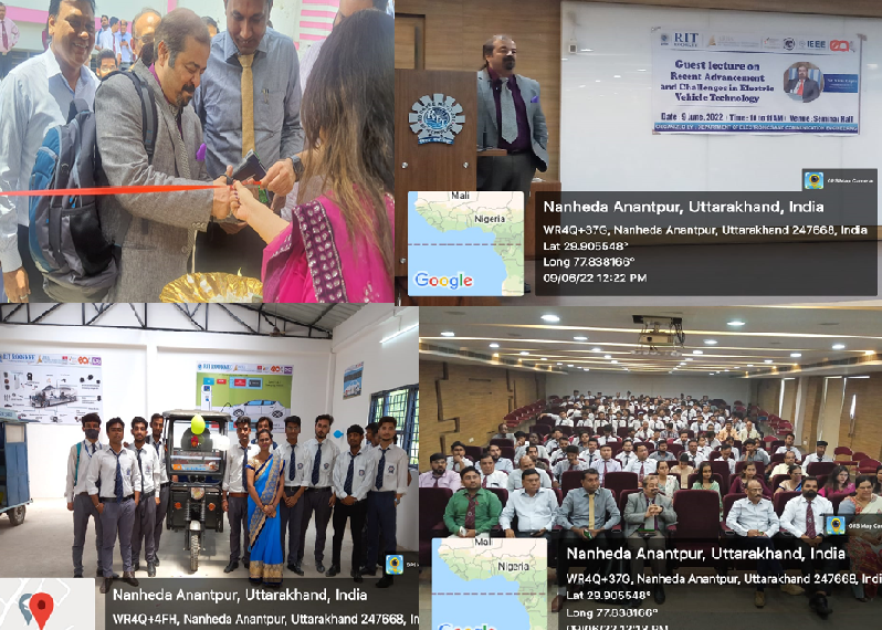 The Department of Electronics & Communication Engineering invited as chief guest Mr. Vikas Kumar, Founder, CEO & CFO of e-Ashwa Automotive Pvt. Ltd., along with Mr. Rahul Agarwal, C.T.O 3SR Consultancy, Mr. Amit Kumar, C.T.O e-Ashwa Automotive Pvt. Ltd., & Mr. Mukesh Verma, Executive 3SR Consultancy, for the Inauguration Ceremony of Center of Excellence Electric Vehicle Lab in the presence of Prof. (Dr.) Parag Jain, Director RIT Roorkee, Faculty members & students of RIT.