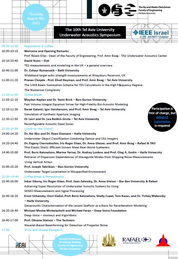 You are cordially invited to attend The 10th Tel Aviv University Underwater Acoustics Symposium on August 4, 2022.