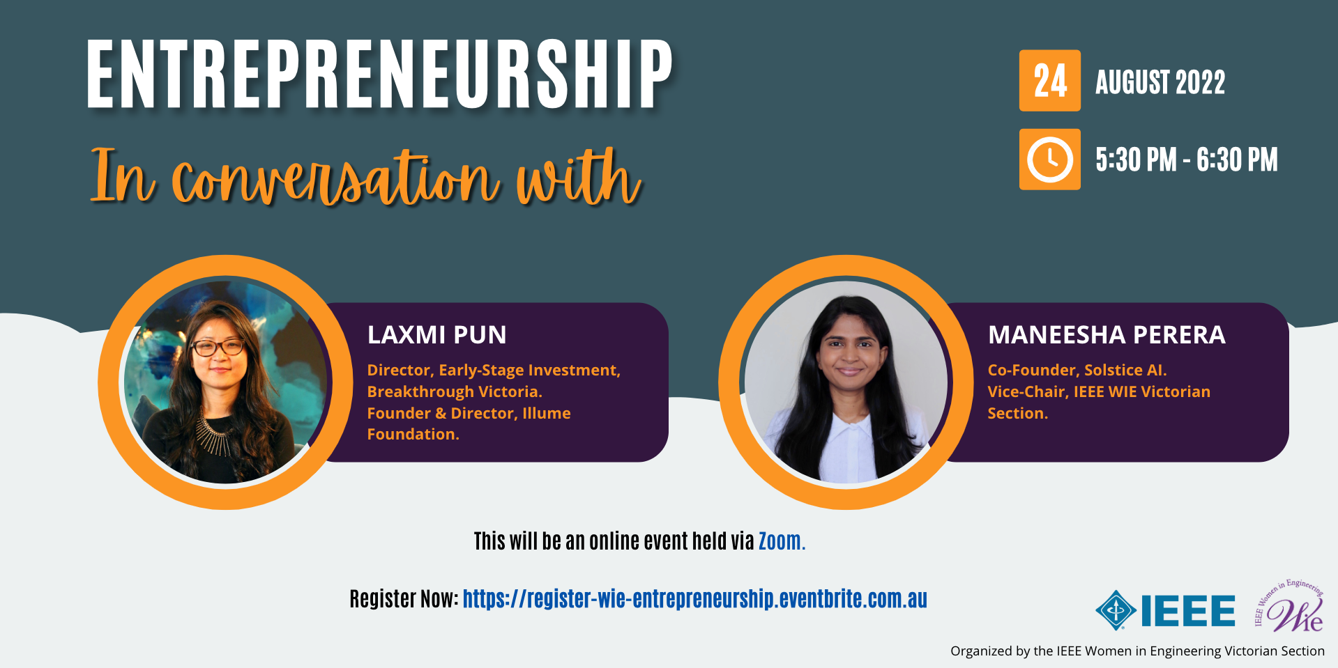 IEEE Women in Engineering Victorian section is organising a session on Entrepreneurship. If you are someone who is interested in learning more about Entrepreneurship and the opportunities available, then this is your opportunity to come and learn and ask your questions.