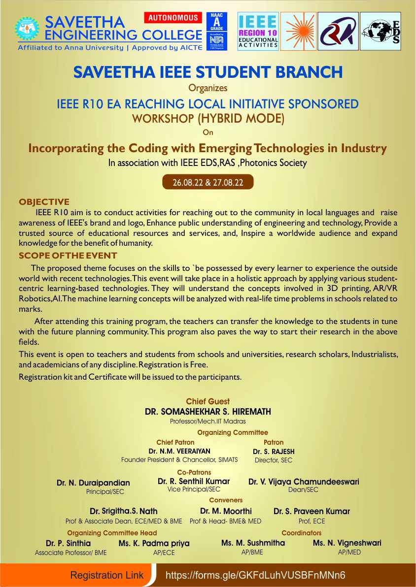 IEEE R10 EA REACHING LOCAL INITIATIVE SPONSORED WORKSHOP On Incorporating the Coding with Emerging Technologies in Industry