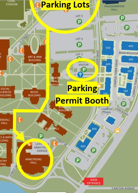 - Building: Armstrong (1st Building at the entrance, stay right and drive to and park in open Lot 5)