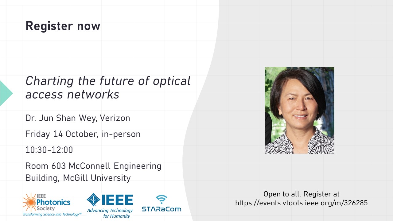 Join the IEEE Montréal Section STARACOM for a technical talk by Dr. Jun Shan Wey, Verizon.