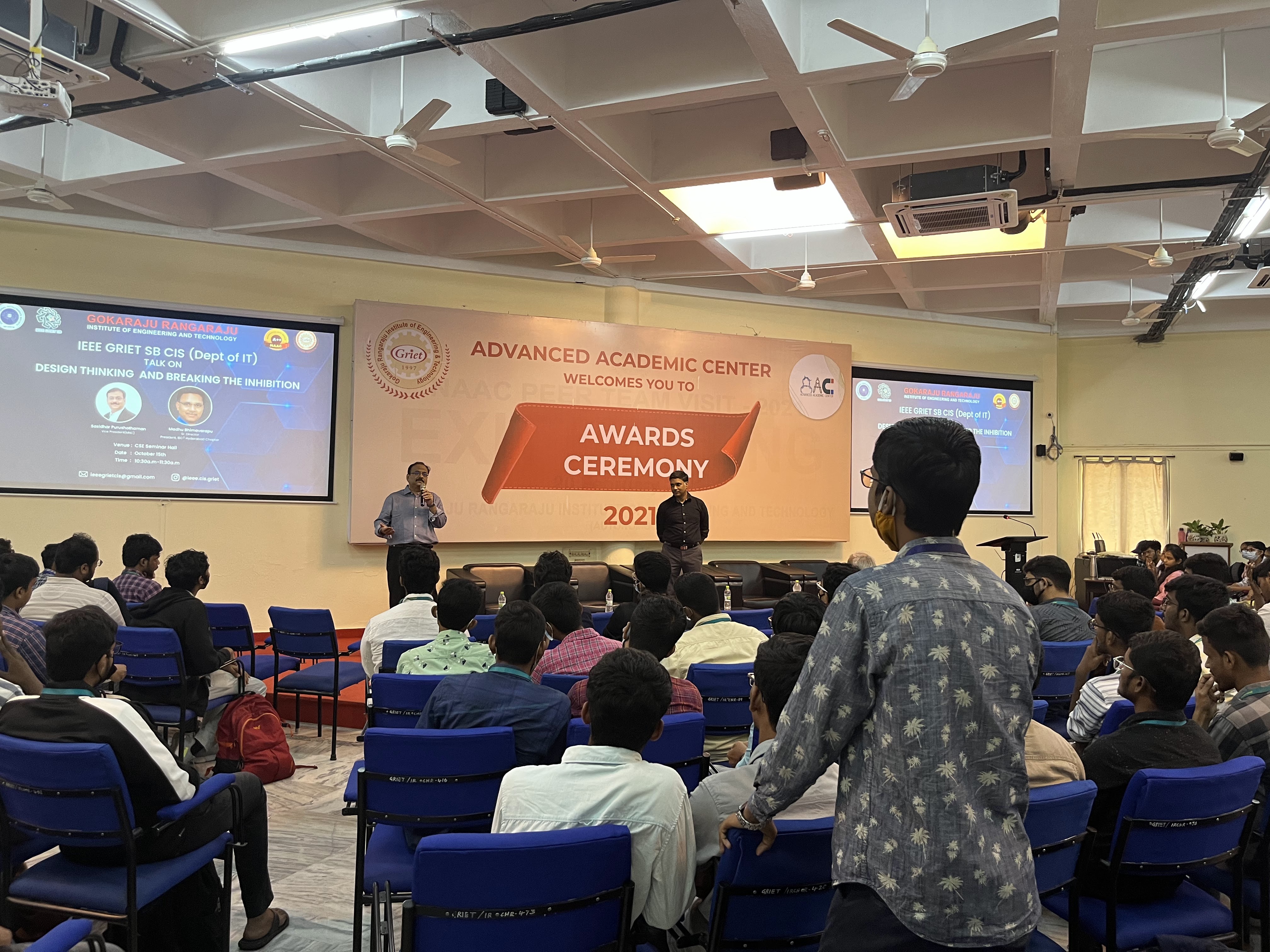 The speakers Mr.Sasidhar Purushothaman, Vice President (MNC) & Mr.Madhu Bhimavarapu President, ISC2 Hyderabad chapter – took the session together on the topics “Breaking The Inhibition & Design Thinking”...