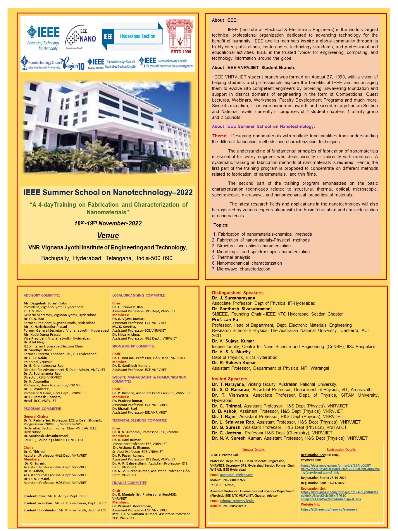 - Co-sponsored by IEEE NTC, IEEE Hyd SAC, IEEE NTC Young Professionals R10, IEEE NTC TC12 Nanomagnetics