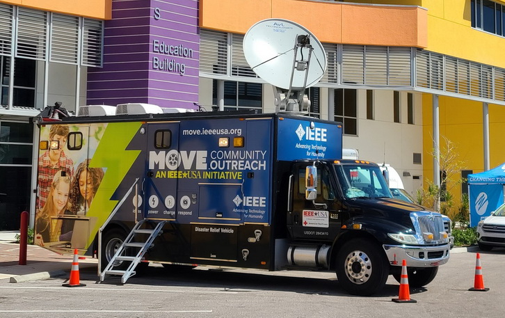When not deployed for disaster relief efforts, the IEEE MOVE vehicle is taken to schools, fairs, and other venues to educate the public, showcase, leading technologies, and raise awareness about the positive impact these technologies have on society.