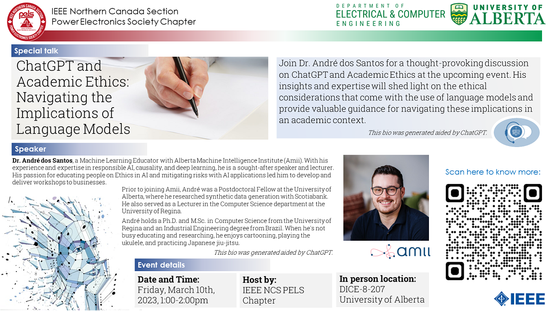 Join Dr. André dos Santos for a thought-provoking discussion on ChatGPT and Academic Ethics at the upcoming event. His insights and expertise will shed light on the ethical considerations that come with the use of language models and provide valuable guidance for navigating these implications in an academic context.