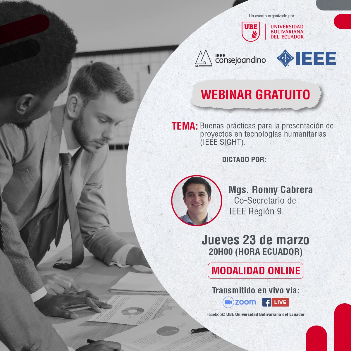 La Universidad Bolivariana del Ecuador junto con IEEE Consejo Andino han organizado un Webinar que será dictado por Ronny Cabrera, quién tiene experiencia en adjudicaciones de estos proyectos IEEE en convocatoria anteriores y también ha participado como evaluador.