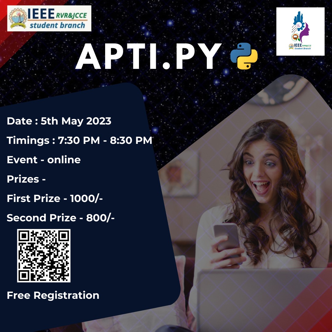 WOMEN IN ENGINEERING in association with the newly formed COMPUTER SOCIETY presents "APTI.PY". A blend of aptitude questions and coding in Python.