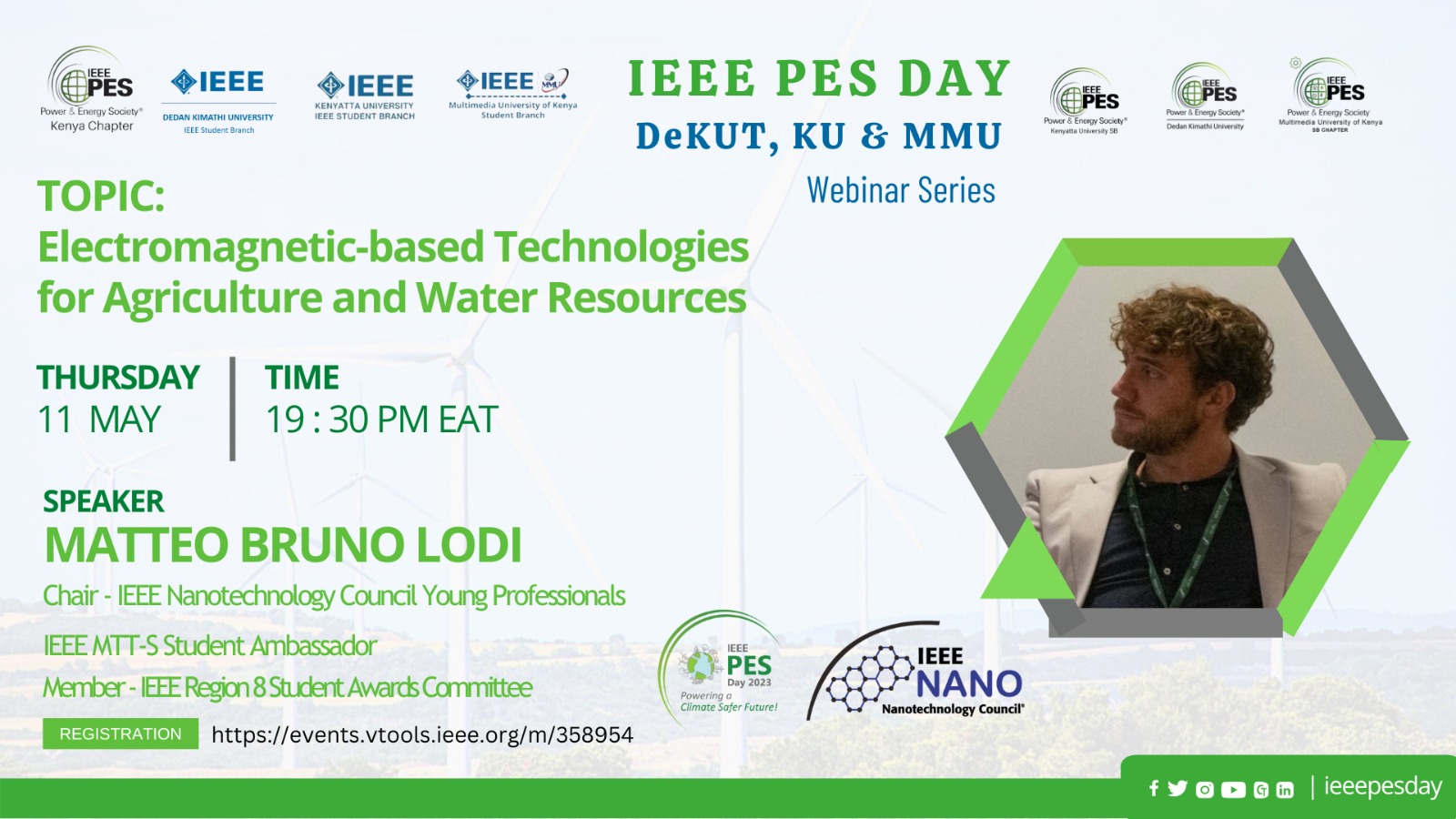Don't miss out on our final IEEE PES KU, DeKUT and MMU webinar series event on Electromagnetic Based Technologies for Agriculture and Water Resources!