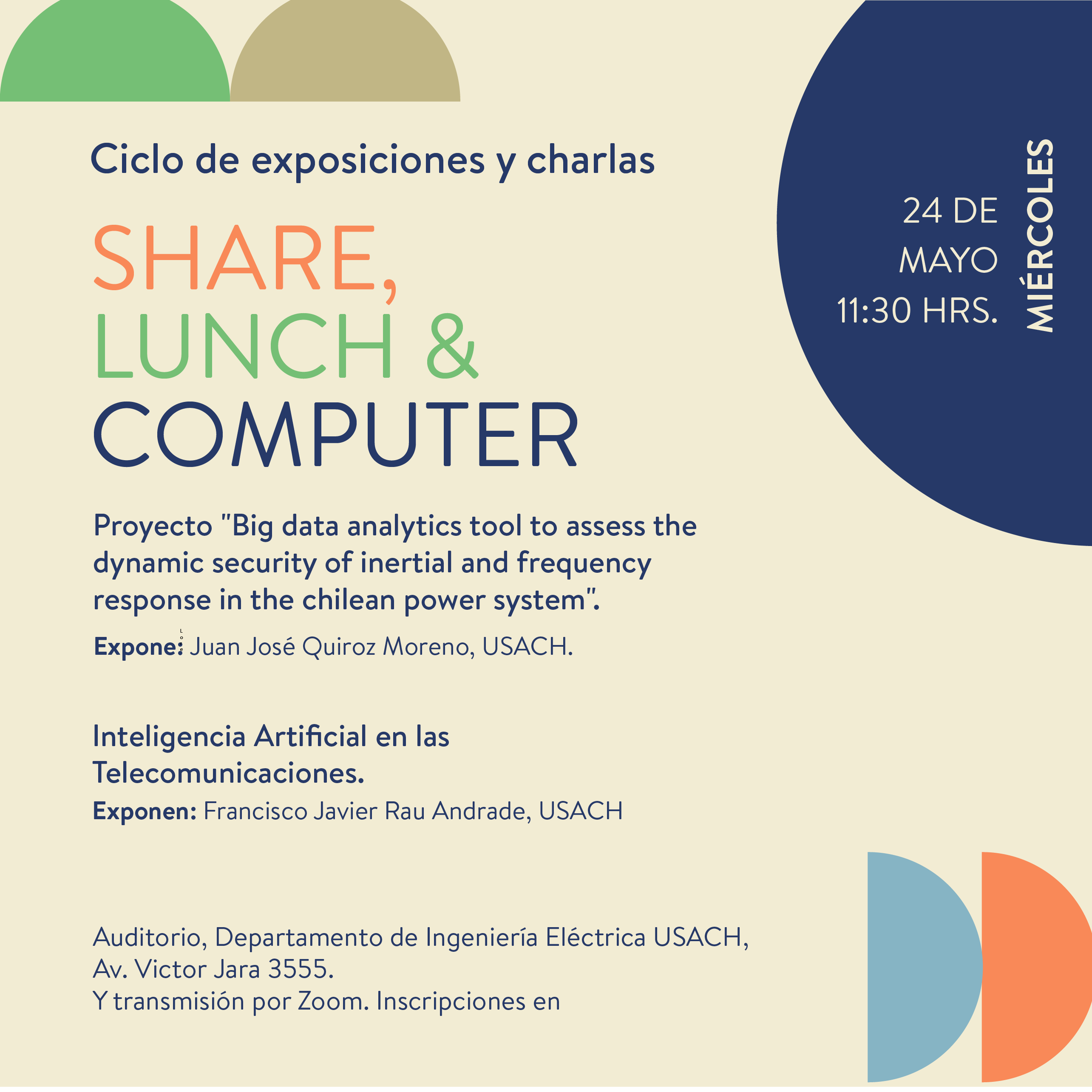 El Departamento de Ingeniería Eléctrica , el capítulo Chile Centro de la IEEE Computer Society y sus capítulos estudiantiles de la Universidad de Santiago de Chile y la Universidad Diego Portales invitan a una actividad del ciclo Share, Lunch & Computer.
