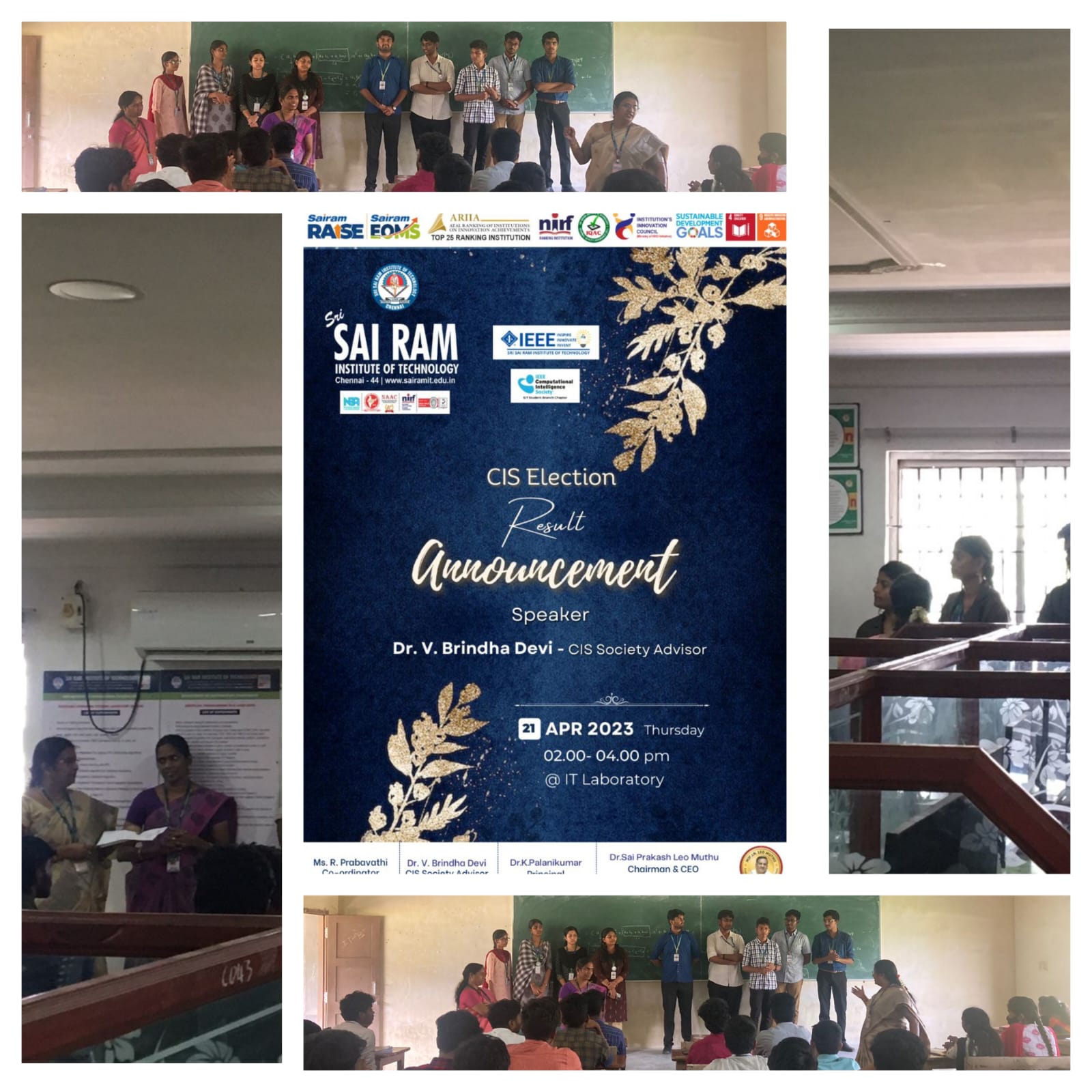 On Thursday, 23rd March 2023, the IEEE CIS SB of Sri Sairam Institute of Technology conducted an election for various positions, including Chair, Vice-Chair, Secretary, Treasurer, and Web master. Several students ran for these positions, and the society appreciated their willingness to serve and contribute to the society's mission. Nearly 20 candidates took part in this election. The society commended all the candidates for their efforts and encouraged them to continue their involvement in the society's activities. The election results were announced on April 21st by the IT department HOD, Dr. V. Brindha Devi. Aravindhan T was elected as the Chair, and Kannan A and Arun Manikandan were elected as the Vice-Chairs. Swetha G R S and Supraja Kannan were elected as the Secretaries. Suganthi Sekar and Reshma N V were elected as the treasurers. S.S. Madusudanan and Jayasuryan N were elected as the web masters. The society congratulated the winners and thanked all the candidates for their participation. They also expressed their commitment to working with the newly elected officers to continue advancing the society's mission.