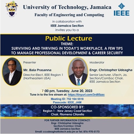 Mr Bala Prasanna, Region 1 Director Elect will provide an interesting presentation and lead a lively discussion about surviving and thriving in today's workplace. The Jamaica Section and New Jersey Coast Section co-sponsor this Event.