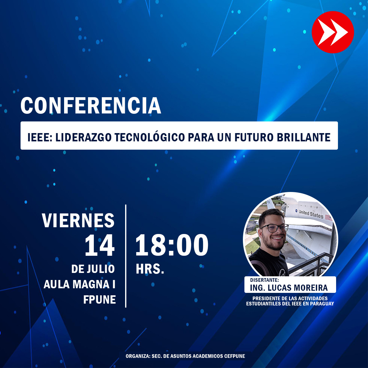 Don't miss this opportunity to learn about IEEE, explore new opportunities, and be part of the bright future we can create together. Join us for the talk "IEEE: Technological Leadership for a Bright Future" at Universidad del Este!