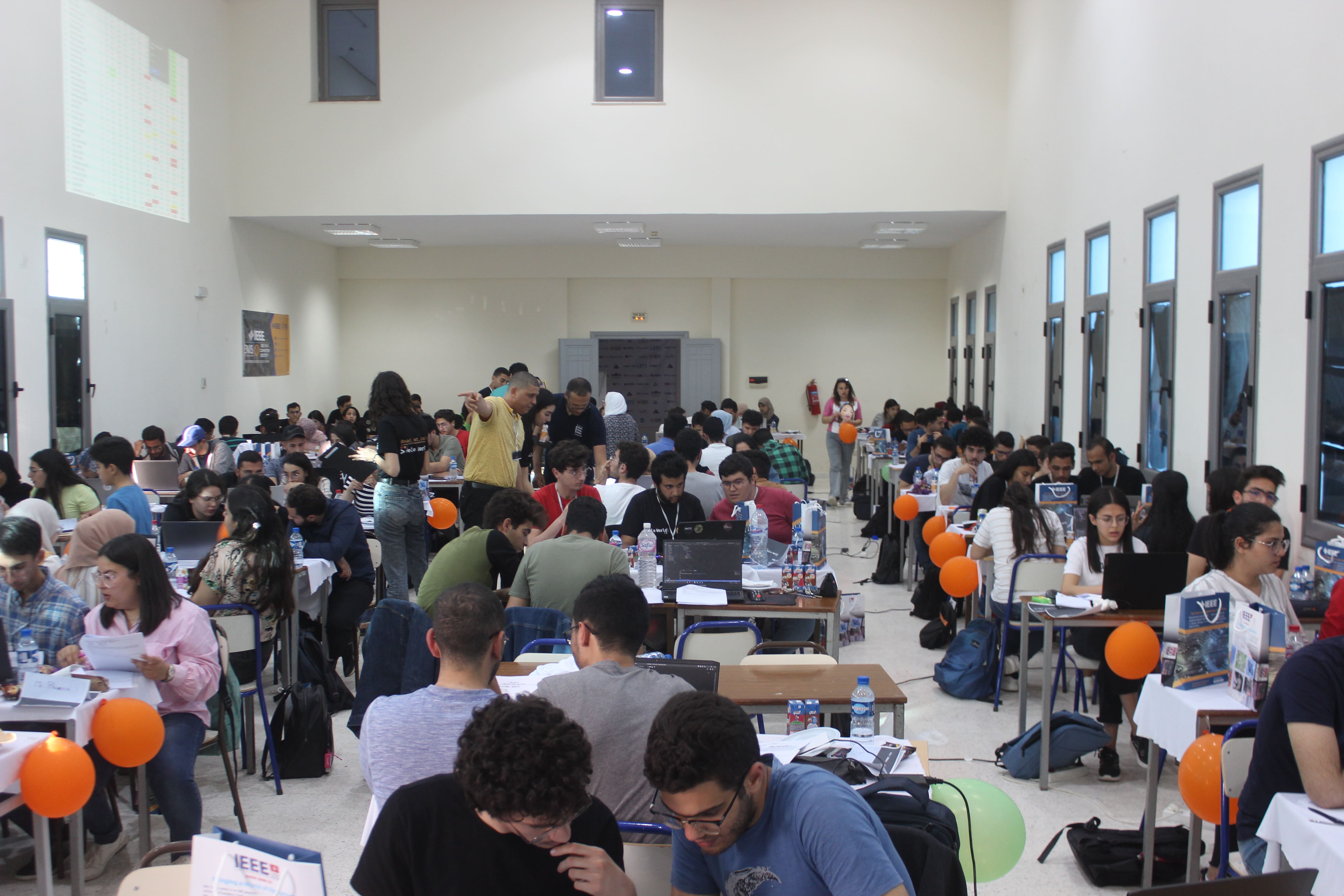 Hello World is a Problem Solving event organized by the IEEE ENIS Computer Society Student Chapter. In its third edition, Hello World has been a major success. Having almost doubled the number of participants from the past 2 editions, our event has hosted 131 competitors divided to 52 teams from all parts of Tunisia. On that fateful Saturday, the 29th of April, The participants were welcomed to the Digital Research Centre of Sfax, introduced to the PC^2 Competitive Programming Platform they are to use and then began the three-hour-long Competition. A set of ten problems were hand-crafted by six well-established professors with our Problem-Solving Coach Doctor Atef Masmoudi as their head. After a grueling and highly competitive race to win it all, the top three teams were announced and claimed their prizes. The event received wide praise and is one of the ENIS SB's proudest achievements.