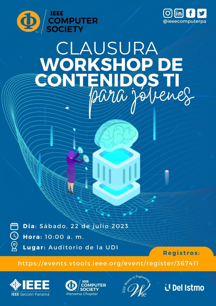 Como parte del Proyecto "Workshop de Contenidos TI para jóvenes", que busca involucrar a estudiantes de premedia y media de colegios de la ciudad de Panamá en campos relacionados con la informática y prepararlos en habilidades informáticas como el diseño de páginas web, la gestión de proyectos con agilidad y BI para principiantes; tendremos la presentación del producto final desarrollado, el cual será valorado por un grupo de profesionales de la computación para obtener tres equipos ganadores.