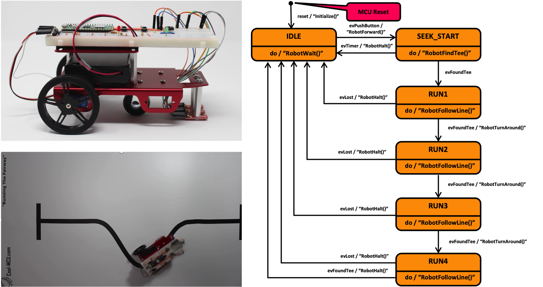 In this 2-course, 8-week workshop, we will review the basic features of state charts and show how this model can be implemented in Arduino C/C++ source code. You will construct a simple line-following robot based on the Raspberry Pi Pico WH board, then learn how to design firmware that completes a basic line follower challenge and enable your students to compete in a CETA Robotics Competition.