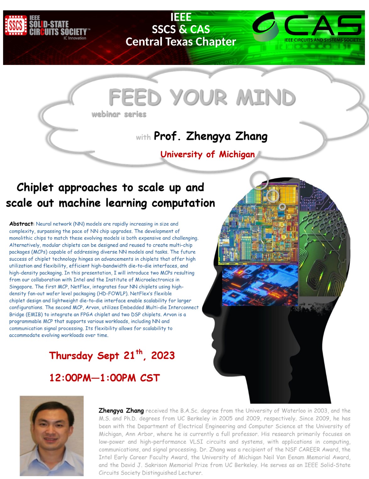 In this presentation, I will introduce two MCPs resulting from our collaboration with Intel and the Institute of Microelectronics in Singapore. The first MCP, NetFlex, integrates four NN chiplets using high- density fan-out wafer level packaging (HD-FOWLP). NetFlex’s flexible chiplet design and lightweight die-to-die interface enable scalability for larger configurations.