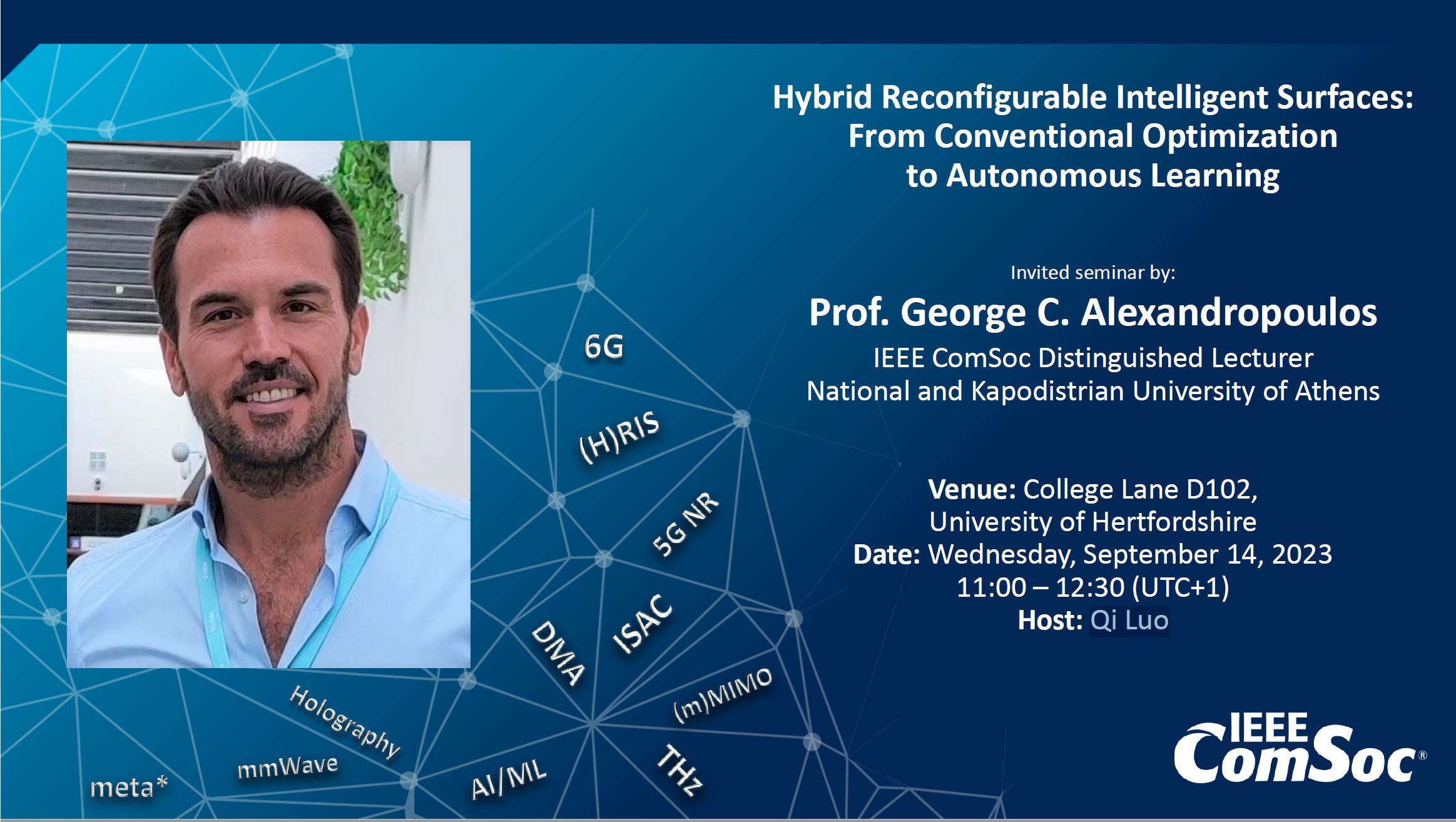 The IEEE Distinguished Lecturer Program (DLP) is one of the most exciting offerings available to the ComSoc Chapter members and non-members. It connects senior IEEE ComSoc members, who are renowned communications technology experts, with ComSoc chapters so they can share their knowledge, expertise, and insights into the future of communications technology. The ComSoc UK and Ireland is please to host the DL tour by Dr. George Alexandropoulos .