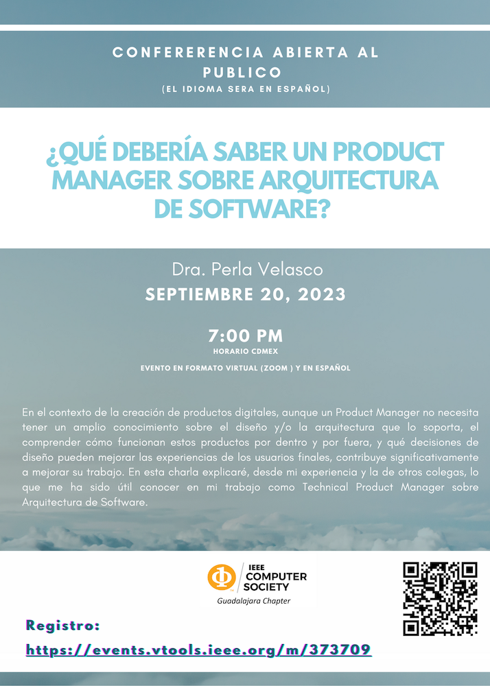 En el contexto de la creación de productos digitales, aunque un Product Manager no necesita tener un amplio conocimiento sobre el diseño y/o la arquitectura que lo soporta, el comprender cómo funcionan estos productos por dentro y por fuera, y qué decisiones de diseño pueden mejorar las experiencias de los usuarios finales, contribuye significativamente a mejorar su trabajo. En esta charla explicaré, desde mi experiencia y la de otros colegas, lo que me ha sido útil conocer en mi trabajo como Technical Product Manager sobre Arquitectura de Software.