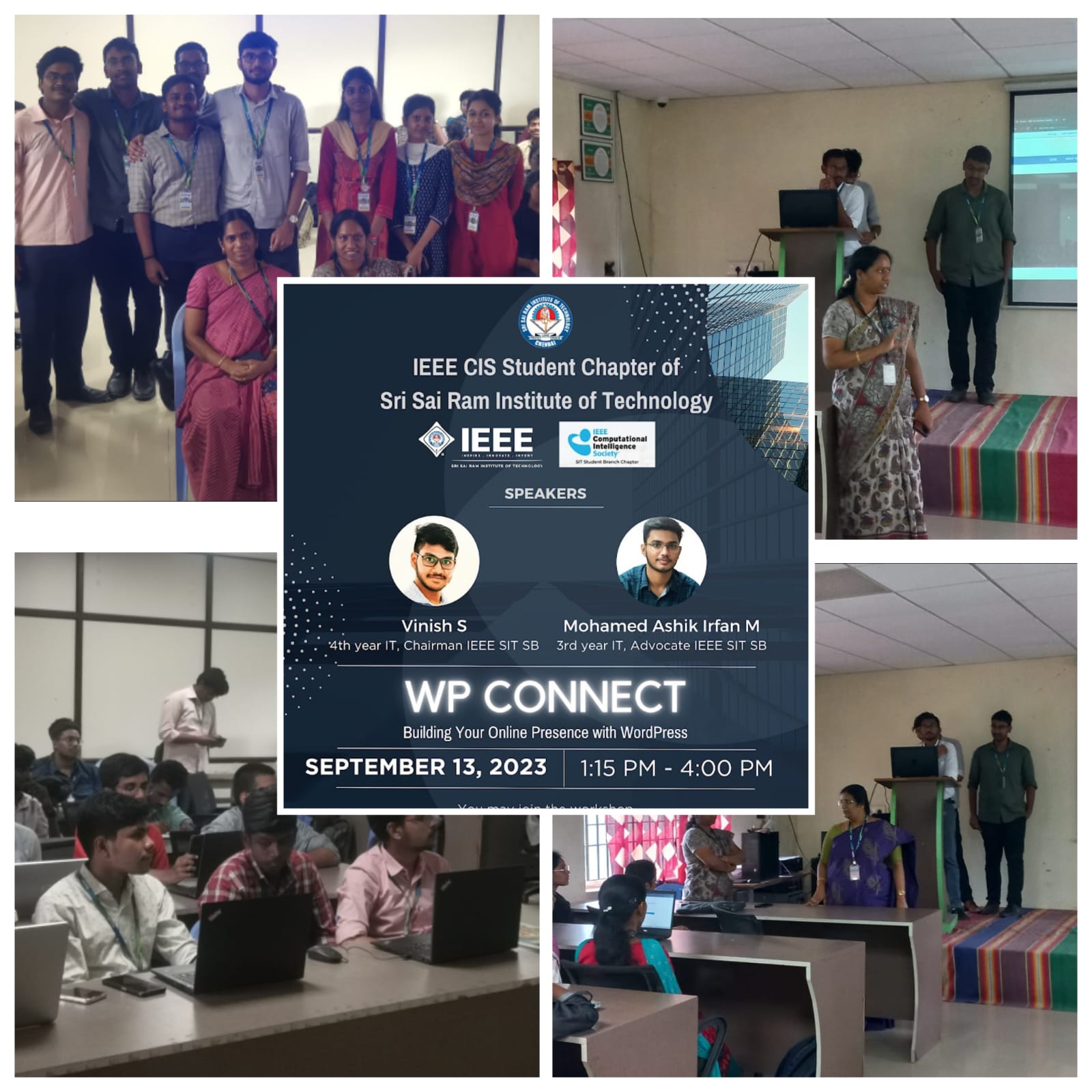 The IEEE Computational Intelligence Society (CIS) Student Branch at Sri Sairam Institute of Technology successfully organized a transformative workshop titled "WP Connect: Building Your Online Presence with WordPress." The workshop featured prominent speakers, Mr. Vinish S, Chairman IEEE SIT SB and Mr. Mohamed Ashik Irfan M, Advocate IEEE SIT SB aimed to provide attendees with comprehensive insights into leveraging WordPress for enhancing their online presence. Participants had the opportunity to engage in an interactive Q&A sessions, allowing them to apply their newfound knowledge in practical scenarios and seek guidance from the speakers. The event brought together a diverse audience, including students, professionals, and WordPress enthusiasts, fostering a collaborative atmosphere for learning and growth Participants explored effective content management strategies and gained insights into search engine optimization techniques to improve site visibility. With the knowledge gained from this workshop, participants are well-equipped to build and strengthen their online presence using WordPress, contributing to their personal and professional growth.