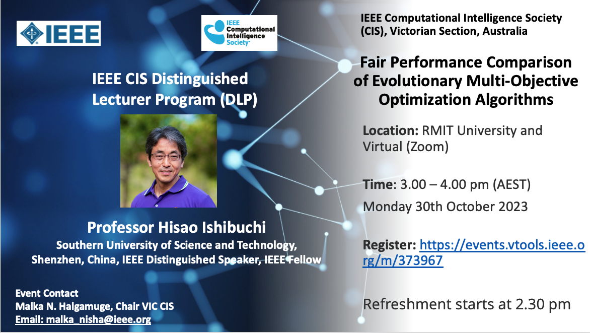 Speaker: Prof Hisao Ishibuchi (IEEE Distinguished Speaker, IEEE Fellow), Southern University of Science and Technology, Shenzhen, China