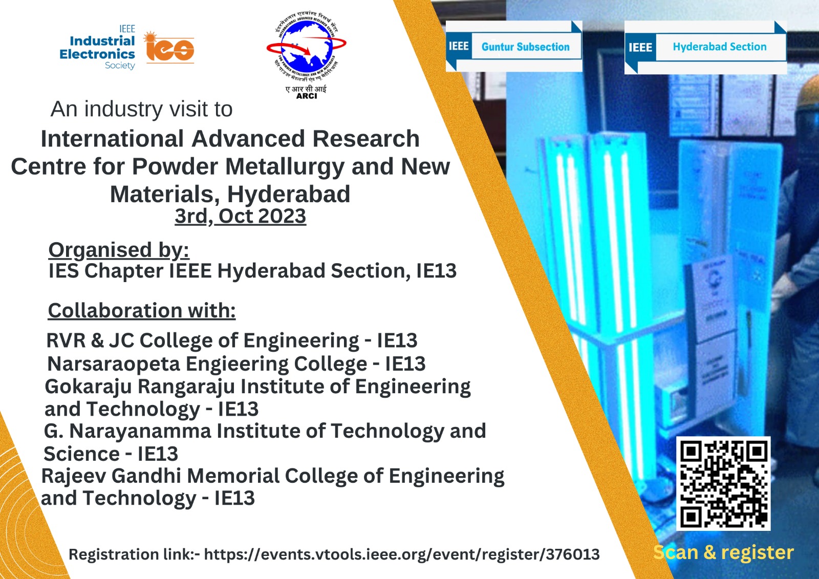 Registration is mandatory and the visitors have to plan their own tranport facility till the gate of ARCI and the visit starts sharp at 10:00AM..