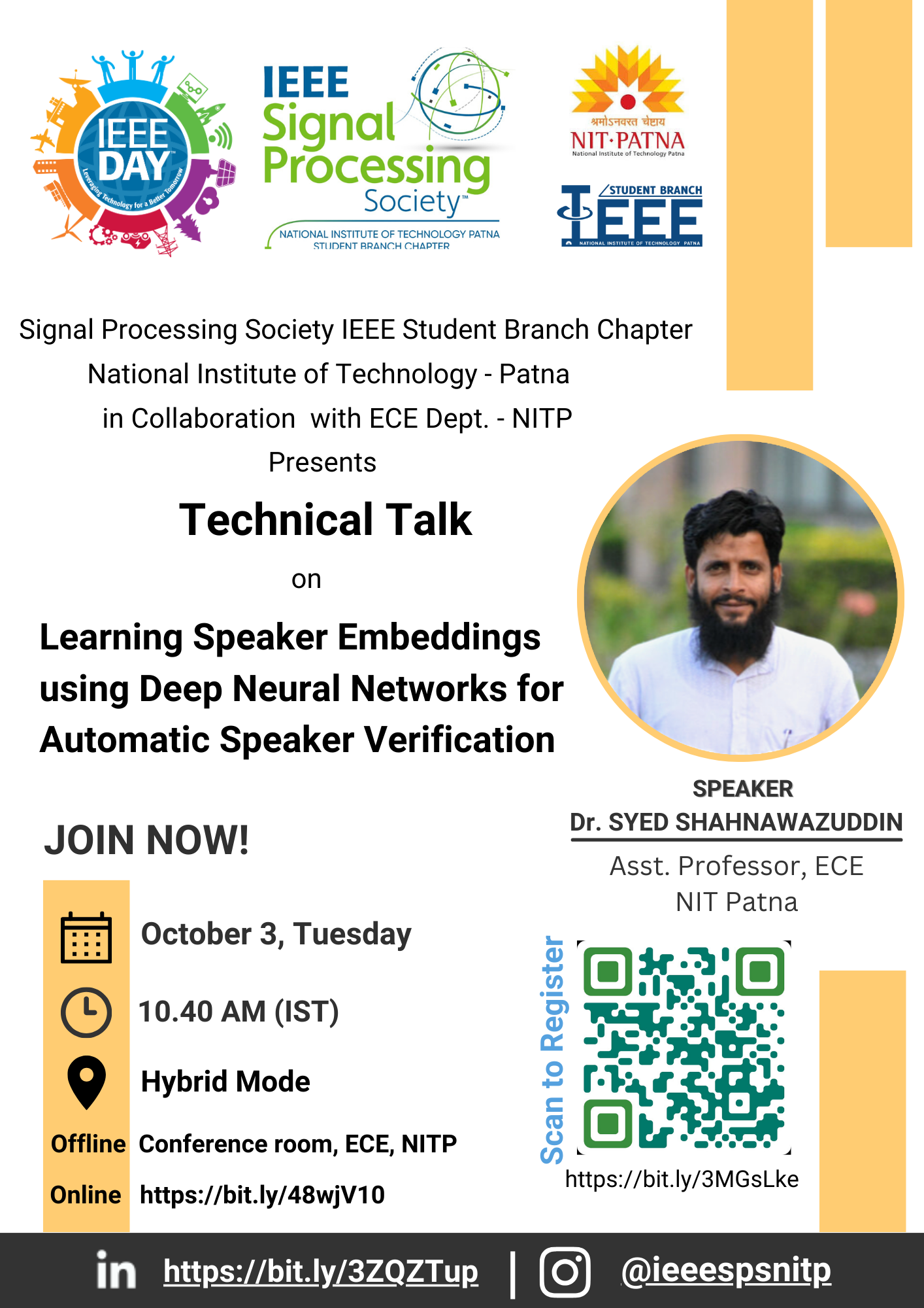 Get ready to dive into the world of cutting-edge technology at the IEEE Technical Lecture on "Learning Speaker Embedding Using Deep Neural Networks for Automatic Speaker Verification" by Dr. Syed Shahnawazuddin, Assistant Professor, ECE dept., NITP.