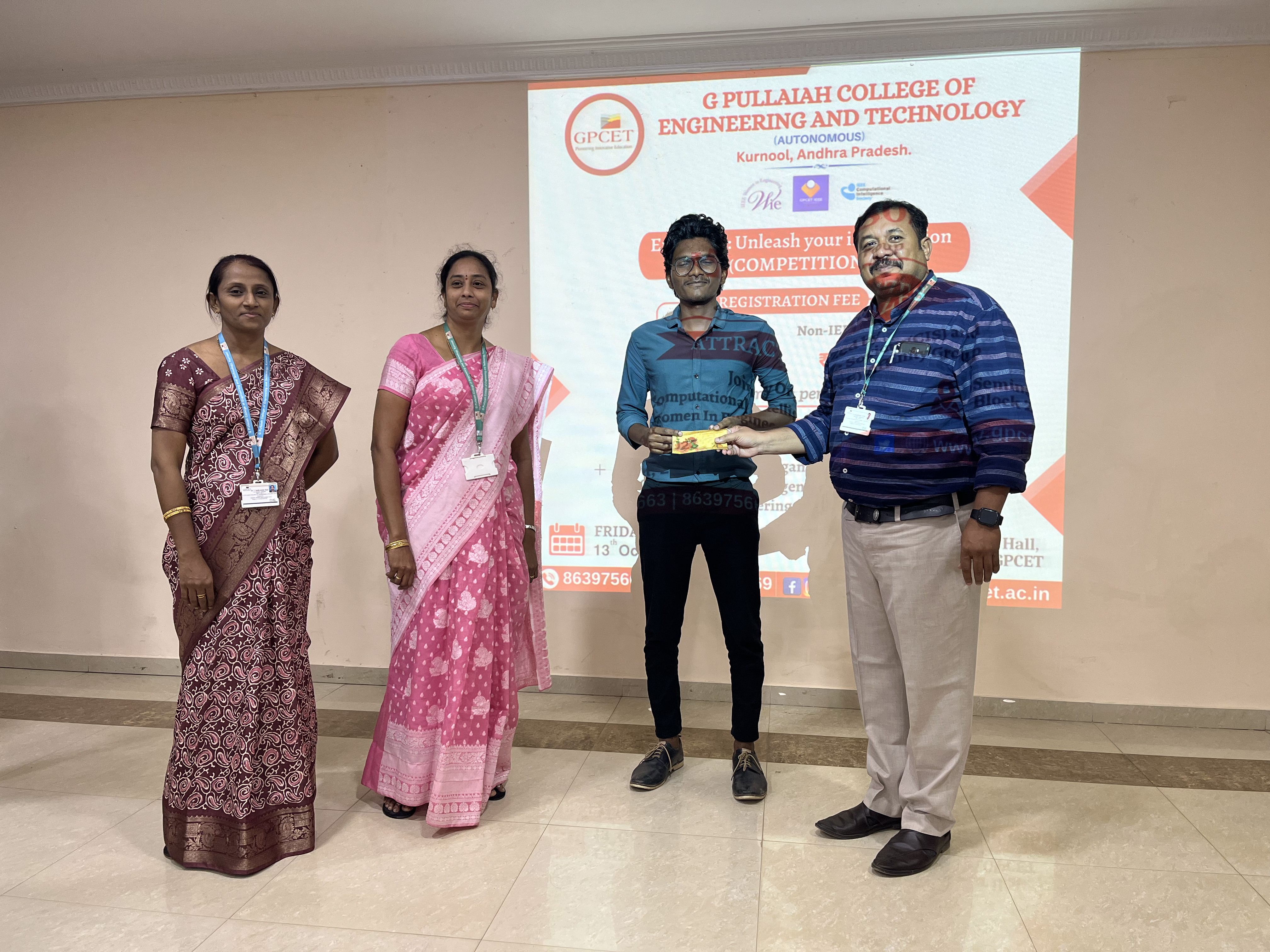 Upon the completion of the evaluation, gifts were distributed to all participants. We invited Dr. M.Srilakshmi who was the esteemed advisor of CS Chapter and the HOD of CSE Department to award the prizes to the winners. The winners have been announced by one of the volunteers. The prizes have been distributed by Dr. M.Srilakshmi, Mr. D. Jayanarayana Reddy, and Mrs. Dr. Syeda Jeelani Basri to all the winners. As part of the contest, a virtual photo session was organized at the end of the contest, and the event was concluded with D. Jayanarayana Reddy congratulating all the winners and the participants, and the student volunteers for their dedicated efforts and cooperation in making the contest a success.